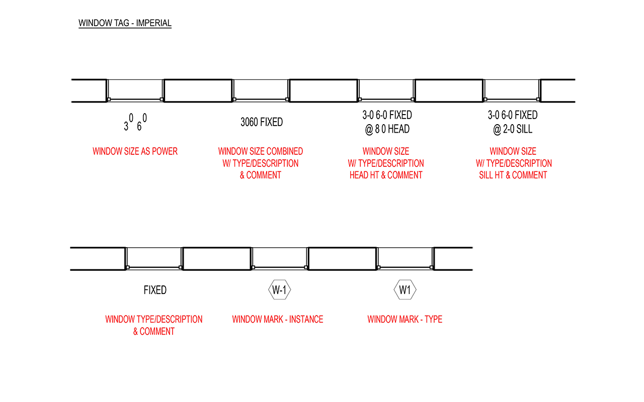The Door/Window Tag Revit Family can create all the listed different iterations you will need for your next project. Create consistent & headache free Door/Window tags across your project.
