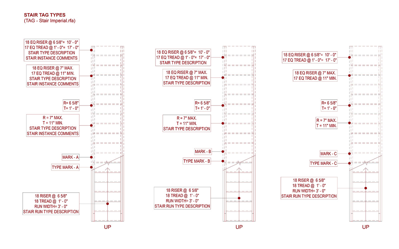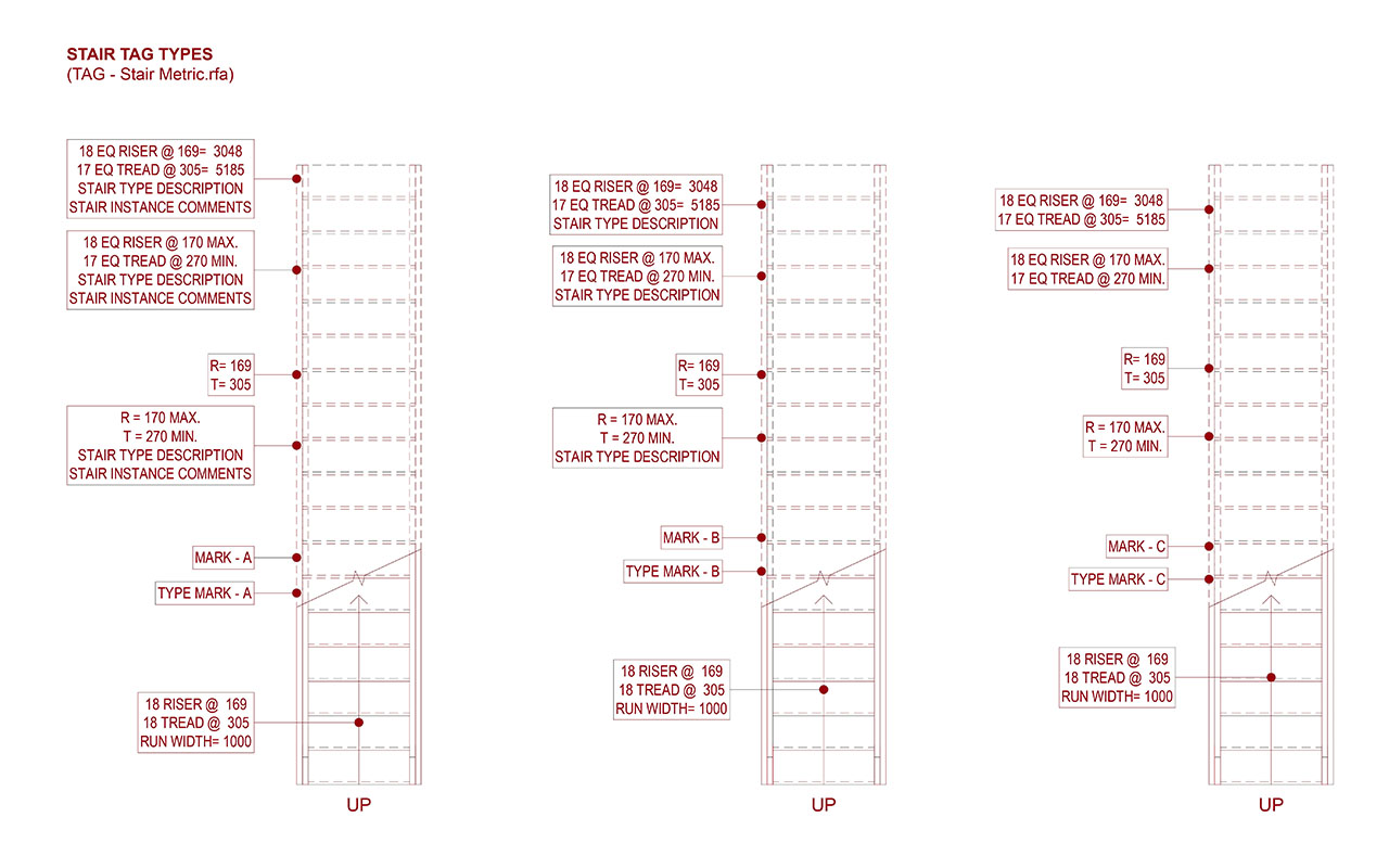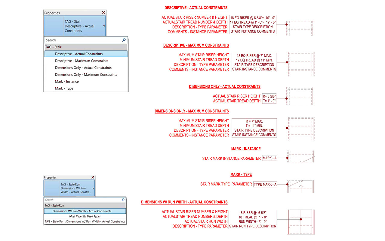 This single Stair Tag Revit Family can create all the listed different iterations you will need for your next project. Create consistent & headache free stair tags across your project. This family is based off the system parameters, so no need to add any extra shared parameters!